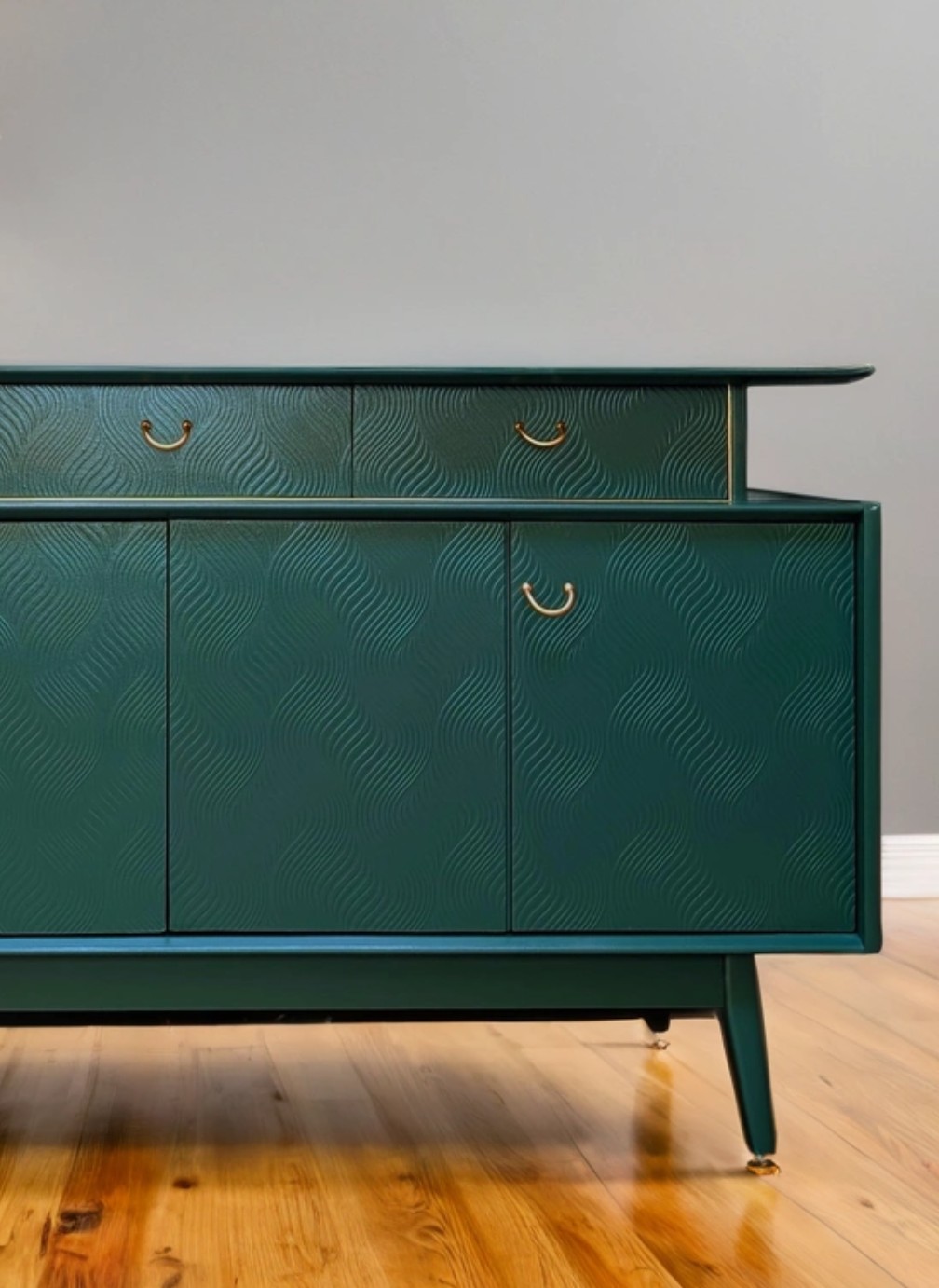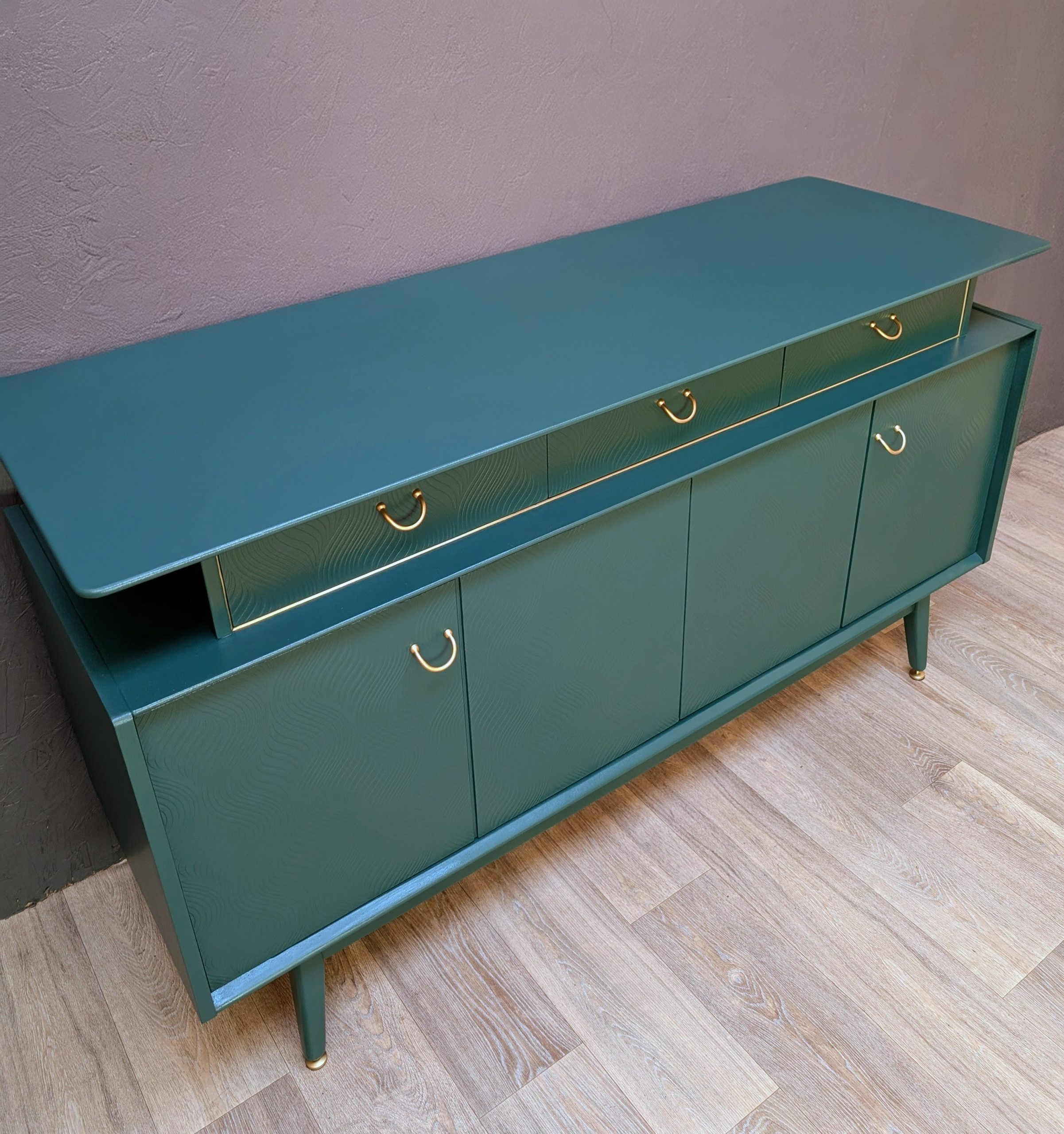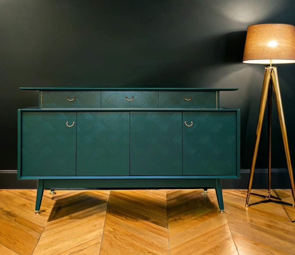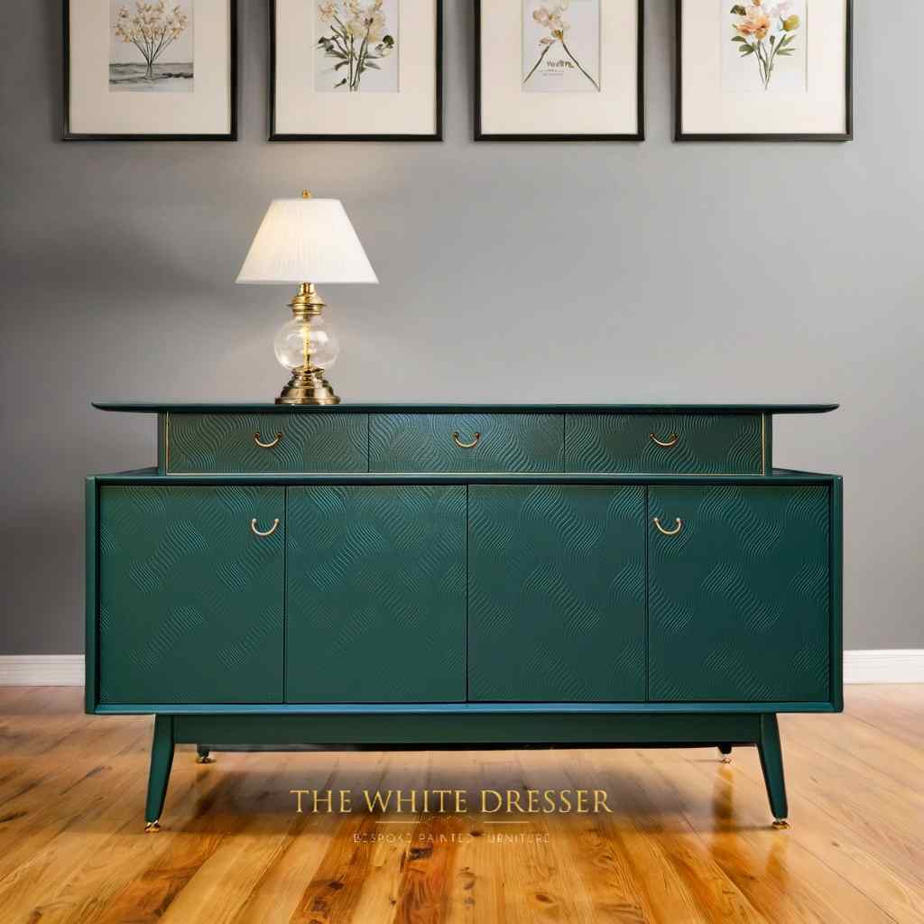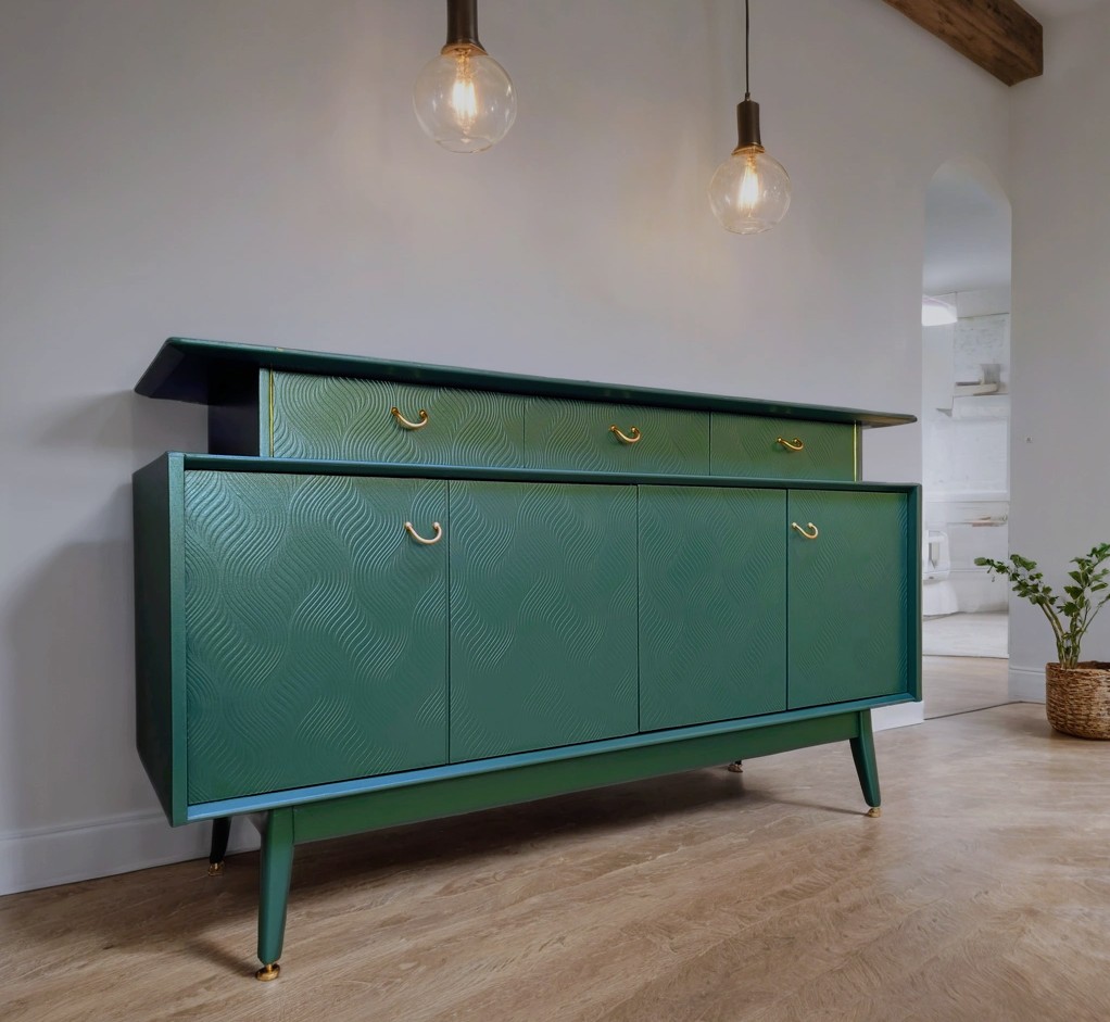 Mid Century Librenza sideboard by G plan beautifully refurbished and painted in custom green in eggshell finish from Dulux.