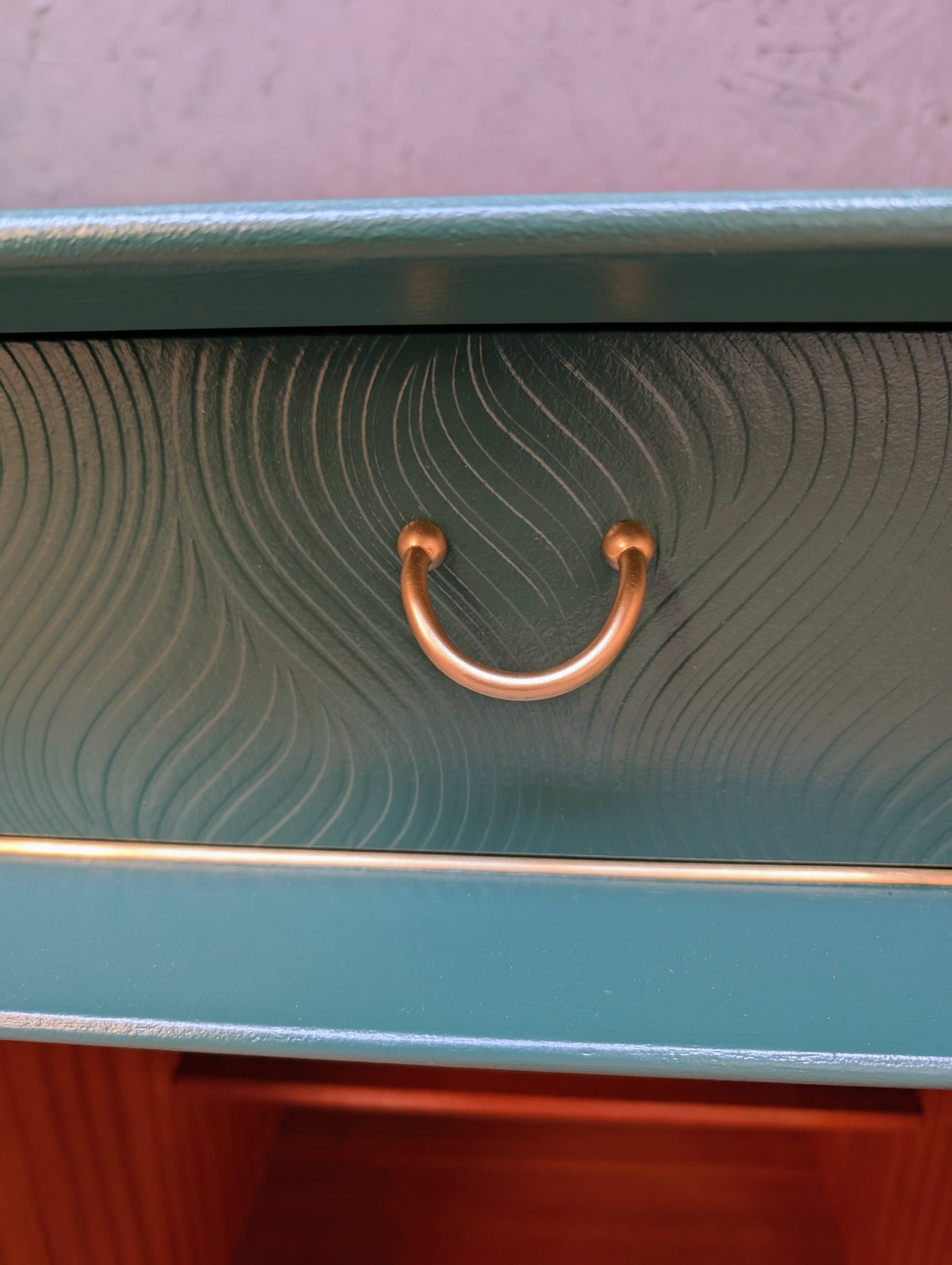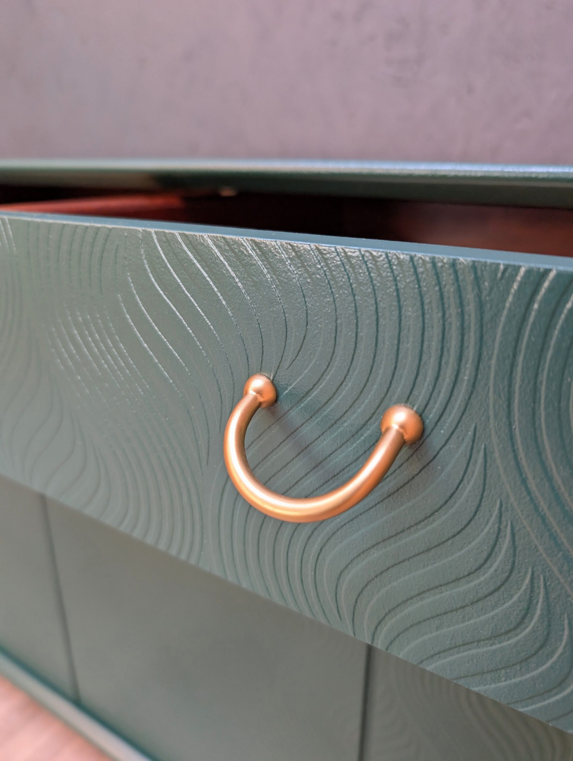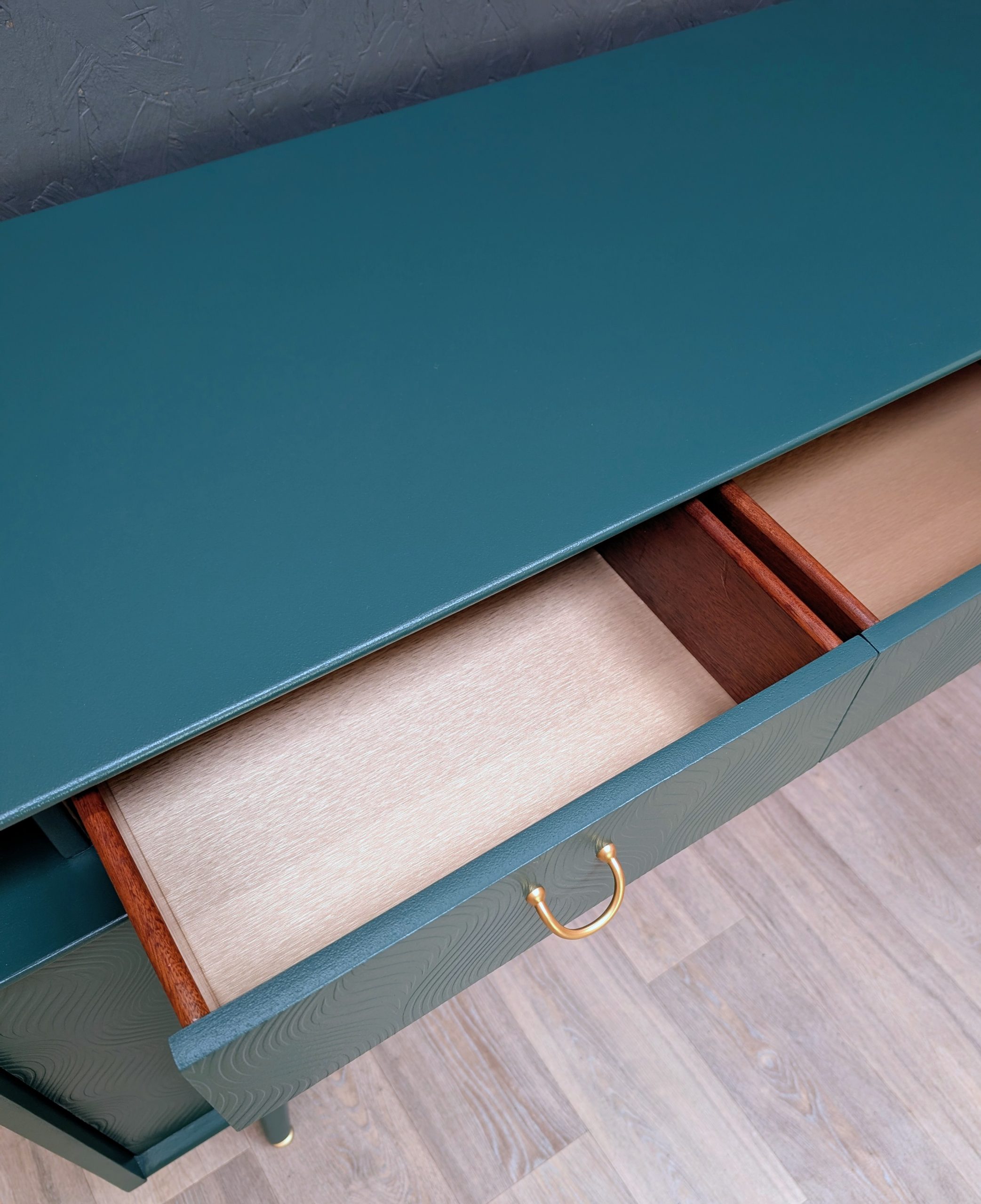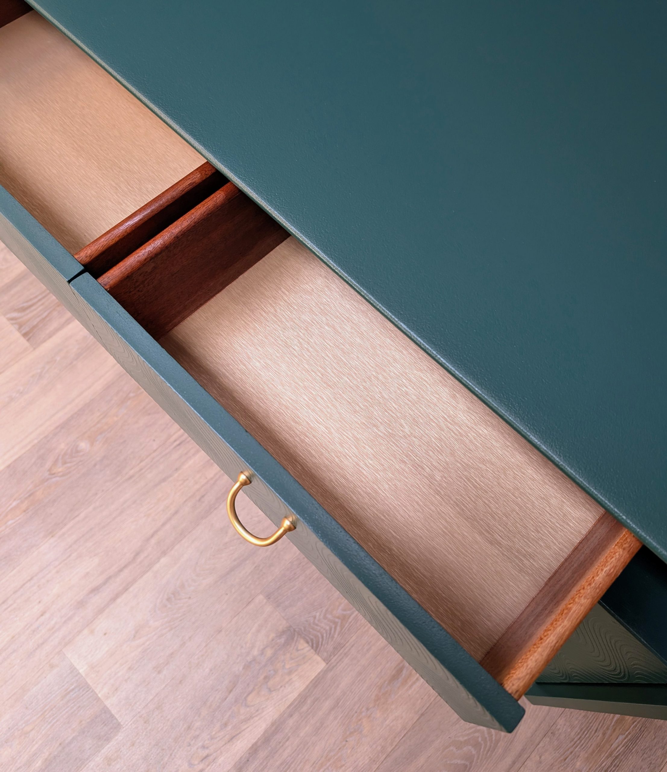 Insides of drawers lined with gold vinyl.